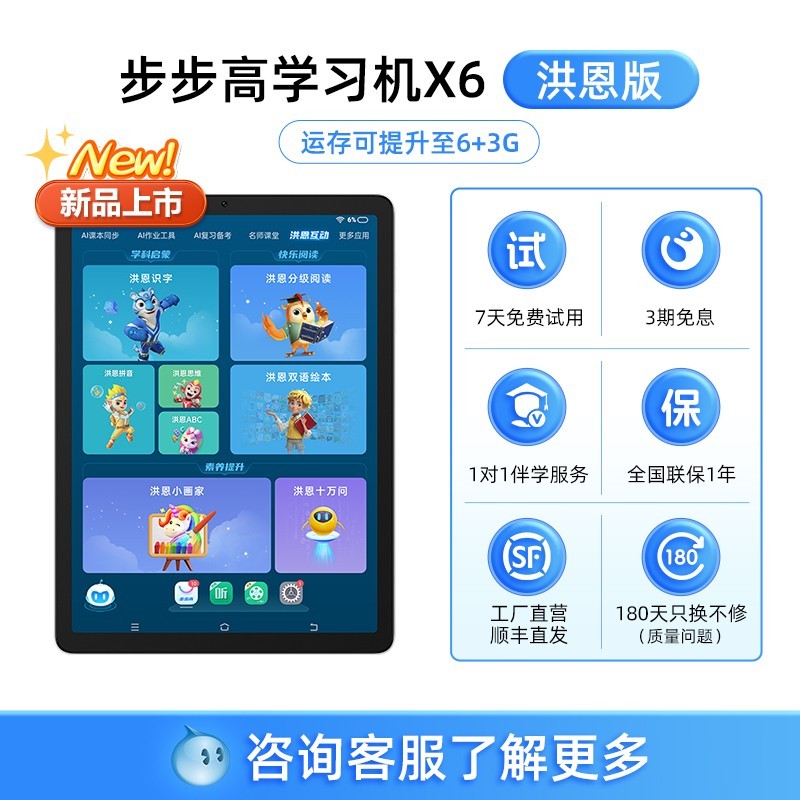 ²½²½¸ßѧϰ»úX6ºé¶÷ÖÁ×ð°æ£¬ÊÇÒ»¿îÊÊÓÃÓÚ´ÓÓ×¶ùÔ°µ½Ð¡Ñ§¡¢³õÖС¢¸ßÖÐȫѧ¶ÎµÄ2025пîÔç½Ì¶ùͯAIÖÇÄÜѧϰ»ú¡£ÕâÊǹٷ½Æì½¢µêµÄÕýÆ·£¬ÑÕÉ«·ÖÀàΪX6 - ºé¶÷°æ£¬ÄÚ´æÈÝÁ¿´ï256GB£¬ÌײÍΪ¹Ù·½±êÅä¡£