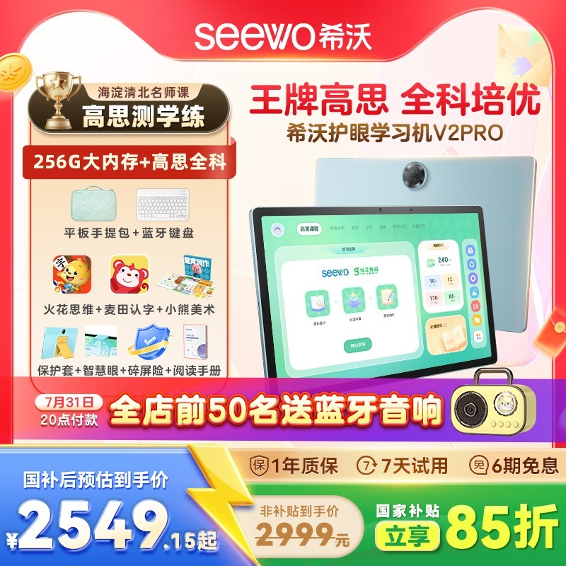 这款学习机原价3499元,现在天猫商城正在促销,可参加满3499 - 500元的活动,还能使用国家补贴享8.5折起(减449.85元),最终到手价仅为2549.15元/件。如果你正在为孩子寻找一款功能全面的学习机,不妨考虑希沃护眼学习机V2Pro。