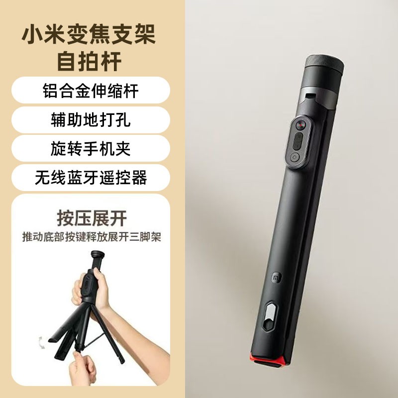 小米 Xiaomi 变焦落地自拍杆是一款集多功能于一身的拍摄辅助工具,适用于自拍、旅游拍照、视频拍摄及直播等多种场景。采用便携式设计,支持蓝牙遥控操作,轻松掌控拍摄节奏。自拍杆配备加长结构和稳固三脚架,可自由调节高度与角度,满足不同环境的拍摄需求。无论是手持拍摄还是置地使用,都能提供出色的稳定性与灵活性。