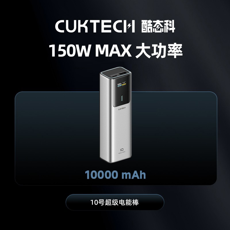 这款移动电源采用多口150W MAX大功率,10000mAh超大容量,重量约287g。它能支持手机、笔记本同时快充,配有TFT彩屏数显,可实时展示电量、功率、电压、电流等多种信息。包装内附赠一根0.5m长的240W 6A快充数据线,支持PD3.1协议,充手机电脑都能用。三口同时全速充电时,C1口仍能保持120W MAX输出。它还兼容UFCS融合快充协议以及PD3.0、QC3.0、PPS等多种快充协议,可满足小米、华为、OPPO、VO等多品牌设备快充需求,兼容手机平板、笔记本电脑、Switch等市面主流设备。
