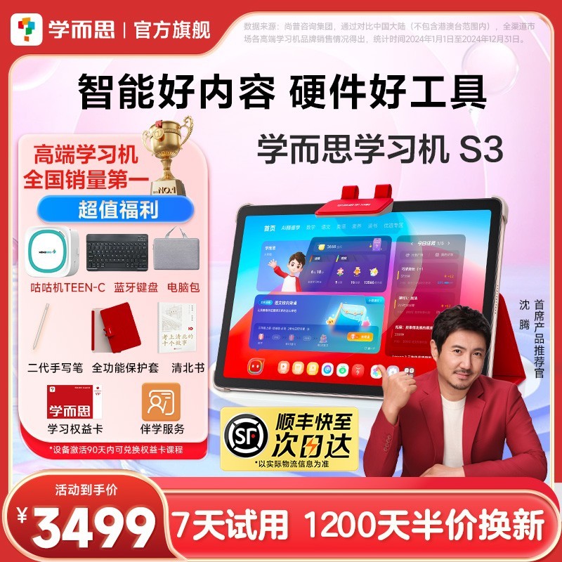 现在天猫商城限时促销,颜色分类为学而思学习机S3,内存256GB官方标配款,原价3599元,使用满3000减100优惠券后,最终到手价仅需3499元,性价比超高,值得入手!