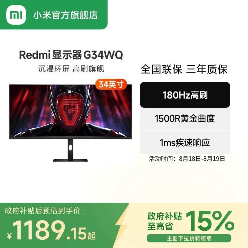 小米红米REDMI G34WQ 34英寸显示器天猫促销