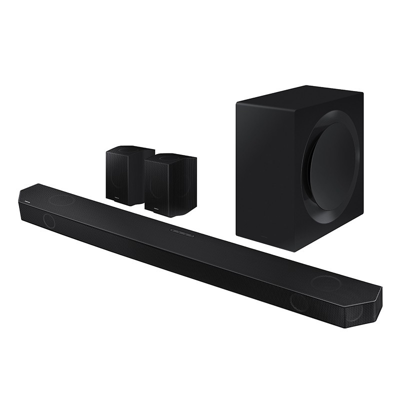 三星 SAMSUNG HW-Q990B/XZ 11.1.4声道家庭组合影院黑色款,带来震撼全景声音效体验,让您仿佛置身影院中心。这套家庭影院配备物理11.1.4声道,包含11个前置和环绕声道、1个无线重低音炮以及4个天空声道,全方位呈现逼真的立体音效。经过三星音频实验室精心调校,专用的侧面与角落声道形成沉浸式环绕声场,无论是观影还是听音乐都能感受到身临其境的震撼。无线重低音炮采用声学透镜设计,低音更精准清晰,轻松还原雷声、鼓声、爆炸声等震撼音效,提升整体听觉冲击力。