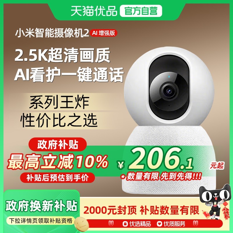 现在天猫优品官方旗舰店有优惠活动。这款摄像头原价299元,活动售价299元的基础上,下单能领取满280减60元的优惠券,还能参与满200元减10元的活动,同时还有政府补贴,补贴比例为10%,补贴金额22.9元。如果下单1件,最终实付低至206.1元。通过这些优惠叠加,包括满200元减10元、10%起减22.9元以及满280减60元优惠券,就能以206.1元的价格把这款实用的智能摄像头带回家。