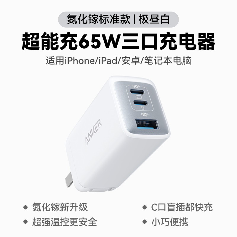 本文属于原创文章,如若转载,请注明来源:安克A2667氮化镓充电器65W快充三口便携旅行白色94元https://dcdv.zol.com.cn/1035/10350905.html