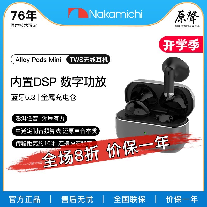 中道Nakamichi蓝牙耳机TWS半入耳式音乐耳机Alloy Pods Min黑色,原价199元。它是一款非常不错的蓝牙耳机,采用半入耳式设计,很适合长时间佩戴,在享受音乐的同时不会给耳朵带来过多负担。而且在音乐播放方面表现出色,能满足日常的音乐聆听需求。