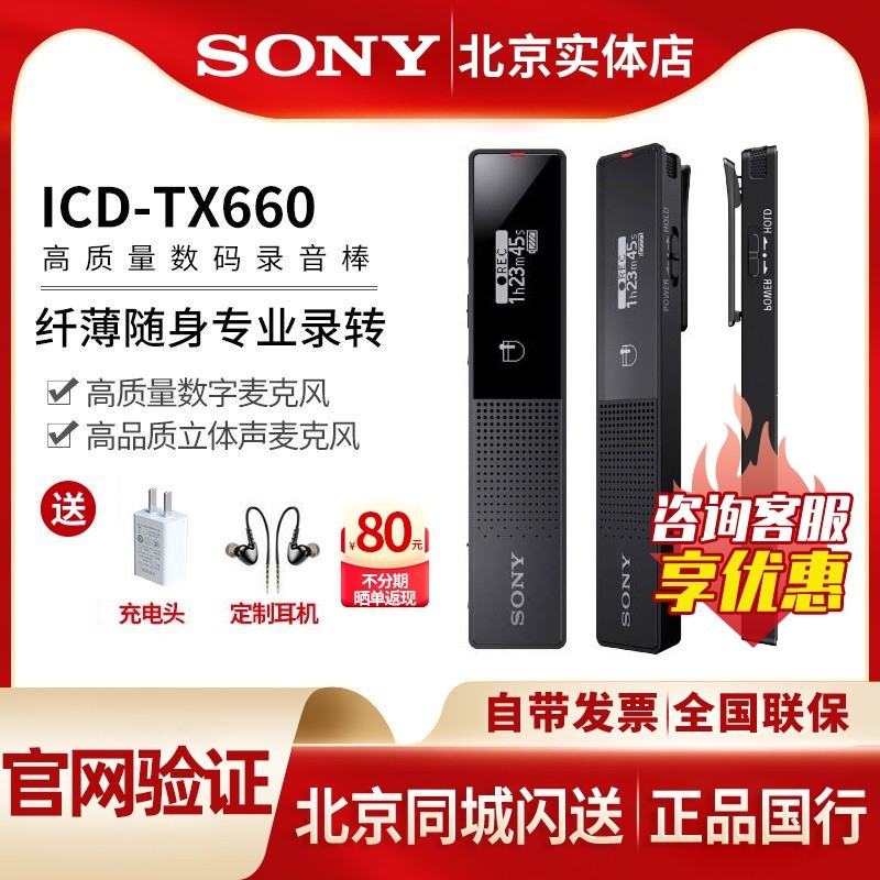索尼SONY icd tx660录音笔专业高清降噪转文字外放录音器,专为高品质录音需求设计,搭载先进降噪技术与高灵敏麦克风,清晰捕捉每一个细节,支持语音转文字功能,提升工作效率,小巧便携,适合会议记录、采访、学习等多种场景使用。现在参与天猫精选优惠活动,原价889元,...