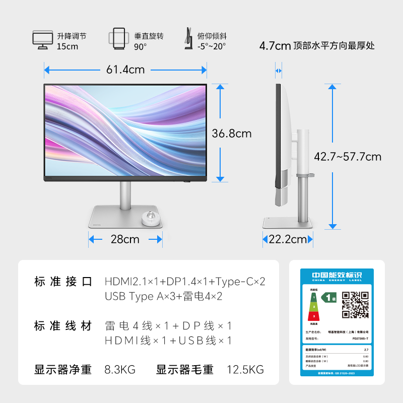 明基BenQ PD2730S显示器,专为专业设计打造。它拥有27英寸5K的高清屏幕,无论是苹果Mac设备连接使用,还是用于修图、剪辑等工作,都能带来出色的视觉体验。同时,该显示器具备护眼功能,能有效减少用眼疲劳。