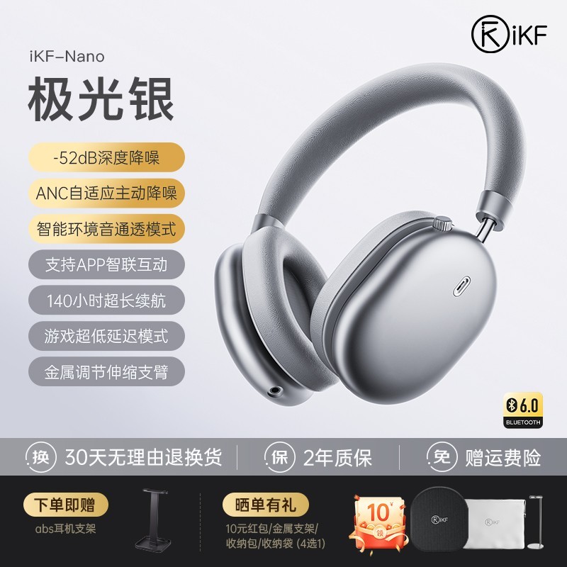iKF Nano耳罩式头戴式动圈蓝牙耳机正在热卖!这款耳机采用耳罩式设计,能带来舒适的佩戴体验,有效隔绝外界噪音。动圈单元让音质表现出色,为你带来沉浸式的音乐享受。在天猫精选,它原本售价499元,现在下单可领取满499减151元优惠券,还能参与15%起减52.2元的优惠活动,下单1件,实付低至295.8元,喜欢的朋友别错过!