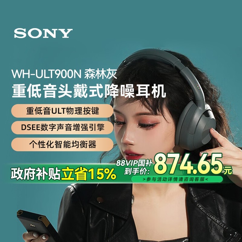 索尼 SONY ULT WEAR WH - ULT900N 耳罩式头戴式主动降噪蓝牙耳机森林灰款正在天猫商城促销。