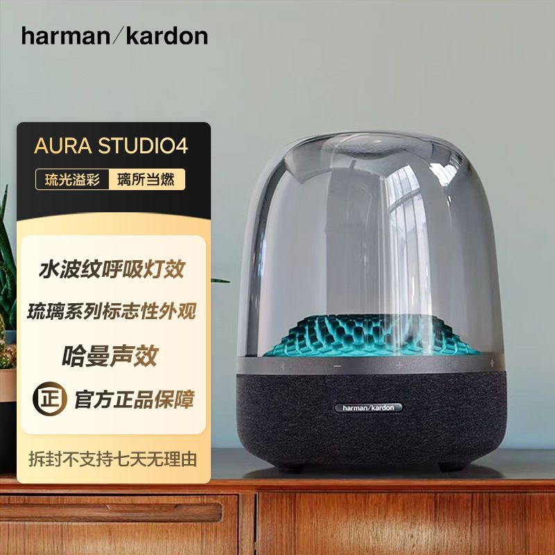 哈曼卡顿音乐琉璃4音响Aura Studio四代震撼来袭,经典水晶球造型再升级,融合现代美学与卓越音效,打造客厅桌面的视听艺术品。采用全新升级的360度全景声技术,搭配高保真低音炮,带来层次丰富、细腻沉浸的听觉享受,无论是流行乐还是古典曲目都能精准还原。支持无线蓝牙连接,操作便捷,兼容多种设备,手机、平板、电脑轻松配对。内置LED氛围灯,光影随音乐律动,营造专属私人音乐空间。