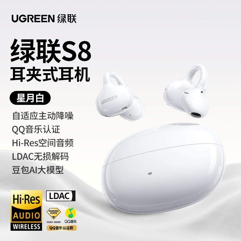 绿联 S8耳夹式蓝牙耳机Ai翻译功能强大,是一款值得入手的耳机。它在天猫精选有优惠活动,这款耳机目前活动售价284.12元,参与立减50元,还有15%起减35.12元优惠活动,下单1件,实付低至199元。