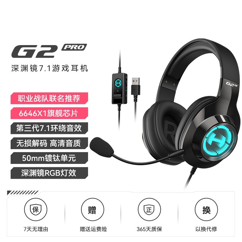 HECATE 漫步者电竞G2Pro头戴式耳机震撼促销中,专为游戏爱好者打造,兼容台式电脑、笔记本等多设备,采用USB有线连接,即插即用,稳定传输低延迟,带来沉浸式音效体验。耳机配备高灵敏度麦克风,支持360°自由调节,通话清晰无杂音,助你在团战中指挥自如。人体工学设计,柔软耳罩贴合双耳,长时间佩戴依旧舒适。官方标配深渊黑配色,外观炫酷,质感出众,尽显电竞风范。
