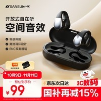 山水 SANSUI TW90S 蓝牙耳机采用不入耳开放式设计,是骨传导概念的无线耳夹式耳机。它佩戴起来较为舒适,开放式的设计能让耳朵保持透气,同时还能在使用耳机时感知周围环境声音,保障使用安全。
