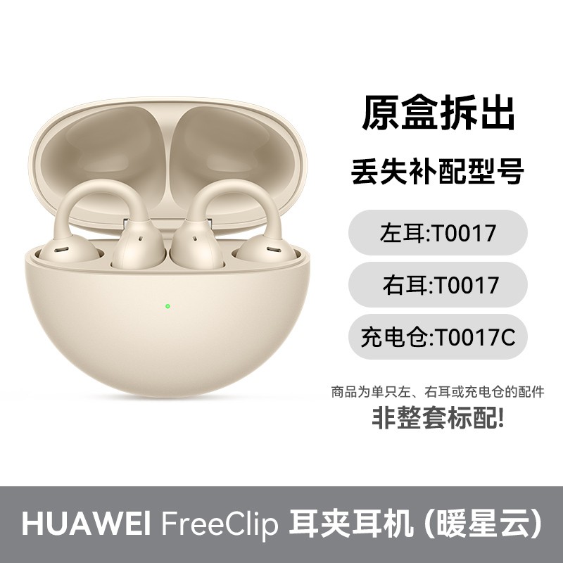 华为 HUAWEI FreeClip耳夹蓝牙耳机,原装单只售卖,无论是左耳还是右耳都有,专为充电仓盒丢失等情况提供补配方案。