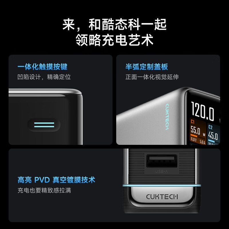 酷态科10号手机单充电头Ultra多口氮化镓120W快充数显OTA现已登陆百亿补贴,高性能与高颜值兼具,采用先进的氮化镓技术,体积小巧却拥有高达120W的澎湃快充功率,支持多设备同时充电,配备多个USB-C和USB-A接口,兼容多种快充协议,适用于手机、平板、笔记本等多种电子设备,内置智能数显屏实时显示电压电流,充电状态一目了然,更有OTA固件升级功能,持续优化使用体验。