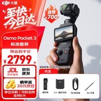 大疆 DJI Pocket 3标准套装 现在京东限时优惠,活动售价仅2799元,下单1件即可享受超值到手价2799元,直降700元,性价比爆棚!原价3499元的高品质云台相机如今触手可及。DJI Pocket 3搭载1英寸CMOS传感器,支持4K超清视频拍摄,智能追踪、 horizonSteady增稳技术让画面始终平稳流畅,无论是旅行记录、Vlog创作还是日常分享都能轻松胜任。小巧便携的设计搭配强大性能,真正实现随手一拍即是大片。标配套装内容齐全,开箱即用,是影像爱好者和内容创作者的理想之选,现在入手正当时!