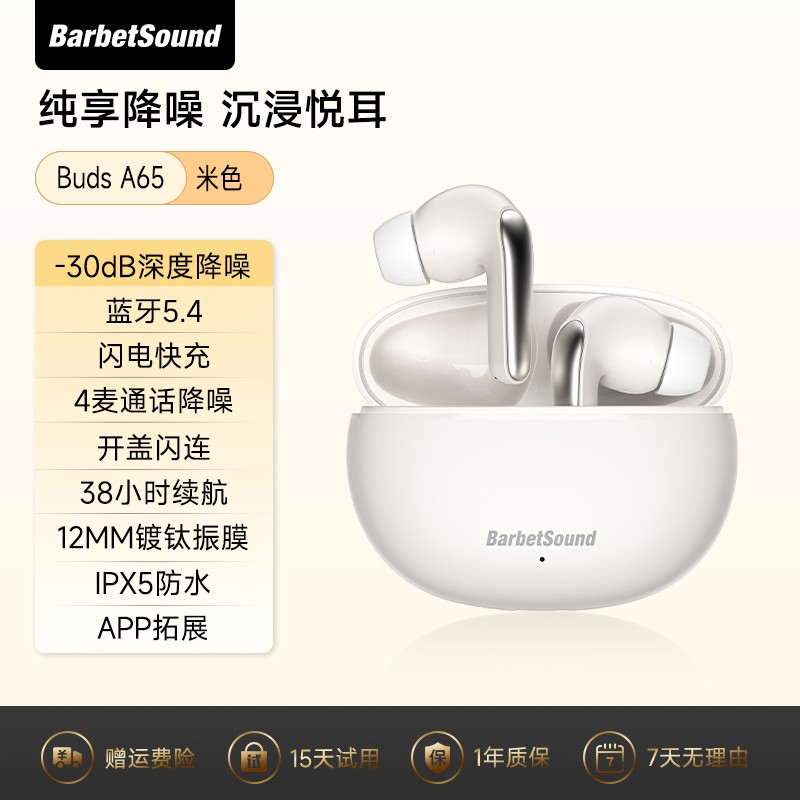 BarbetSound Buds A65主动降噪蓝牙耳机是新款产品,专为男女设计。它具备长续航能力,让你在使用过程中无需频繁充电。拥有高音质,能为你带来出色的听觉体验。这款耳机采用无线设计,使用起来更加便捷。目前在淘宝天猫商城,该商品特价至64.83元,还可参加淘金币立减活动...