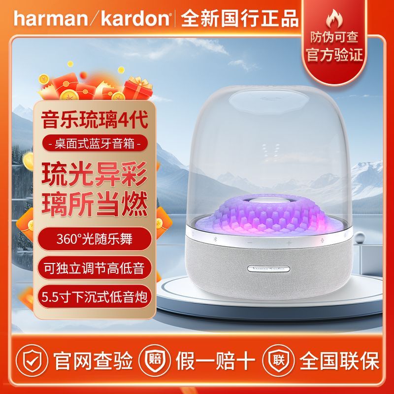 哈曼卡顿琉璃4代Aura Studio4家用炫彩灯光透明音箱是一款超棒的蓝牙桌面音响。它拥有炫彩灯光,能营造出美妙的氛围,让你的家居生活更具格调。其音质出色,能为你带来沉浸式的音乐体验。