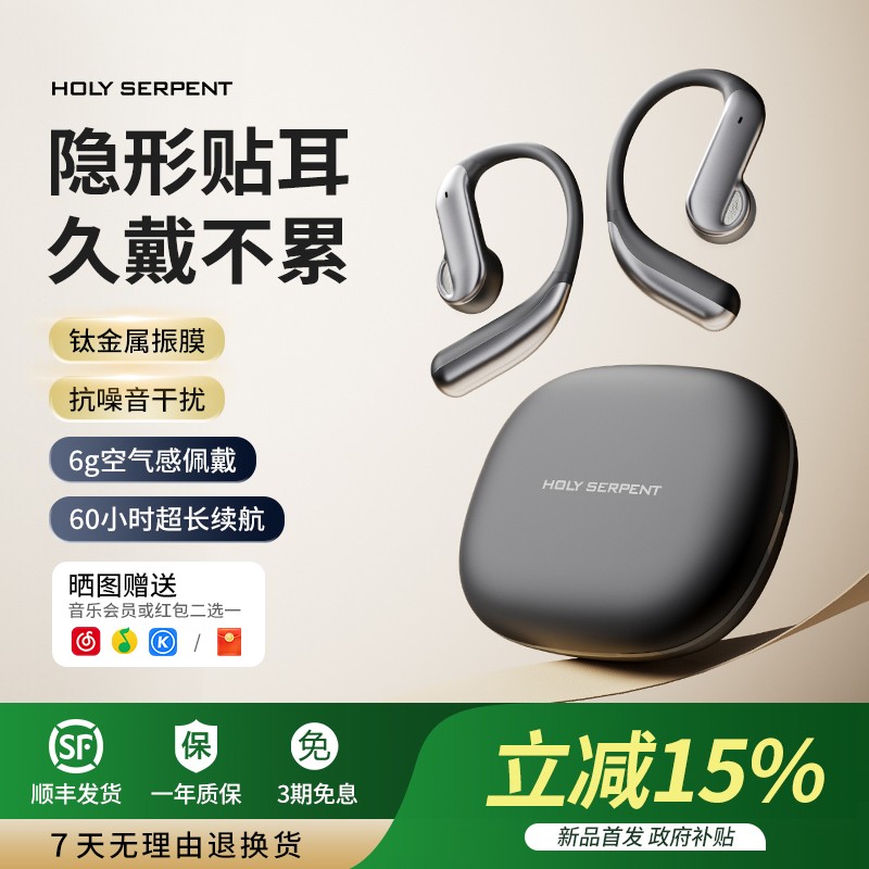 蛇圣天琴蓝牙耳机是挂耳式的2025最新无线运动耳机,采用开放式设计,属于不入耳骨传导概念耳机,还在相关金榜排名第1名、排行前十。这款耳机非常适合跑步等运动场景使用。