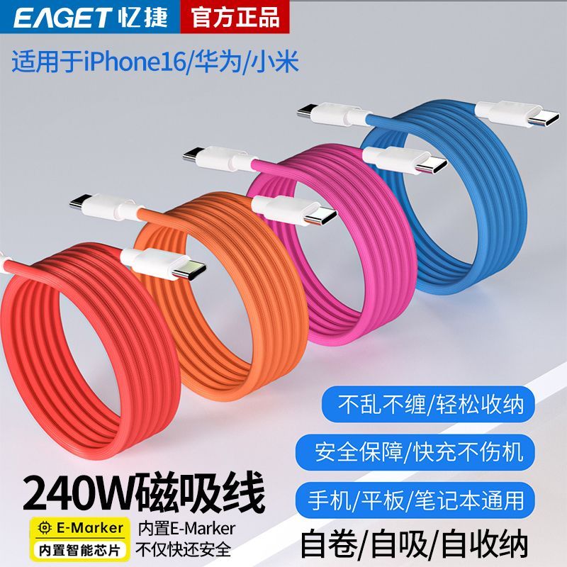 忆捷240W磁吸收纳超级快充数据线是一款兼容性广性能强的车载充电线,支持小米华为苹果1516等主流机型,内置E-marker芯片,智能识别并匹配多种快充协议,兼容OPPO、vivo、小米等品牌设备,充电更高效安全。磁吸设计方便收纳,一贴即合操作便捷,特别适合车载使用,有效避免线材缠绕。