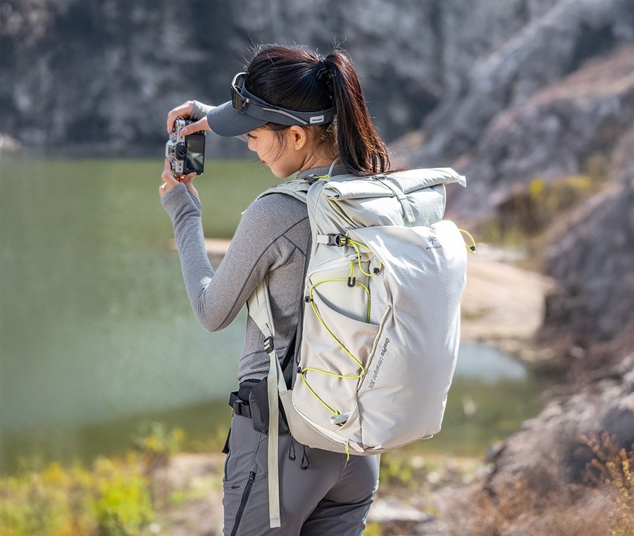 创新侧面快取窗口,区别于市面其他轻量户外摄影包,在徒步等户外场景中,无需放下背包即可快速取出相机