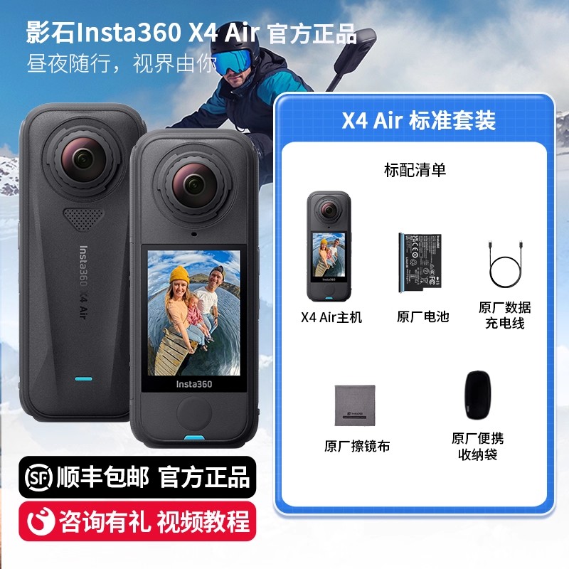 Insta360 影石 X4 Air X3 运动全景相机震撼来袭专为极限运动与户外创作打造轻松记录每一刻精彩支持360度全景拍摄带来影院级画质体验无论是摩托车骑行还是日常Vlog拍摄都能呈现流畅稳定的超清画面内置智能防抖无需额外云台复杂动作也能拍出丝滑大片感支持实时直播一键直连社交平台分享即刻开启边骑边播新模式现在天猫精选限时优惠活动售价2498元下单立享折扣实付仅需1994.6元性价比爆棚到手价直降超500元机会难得速来抢购