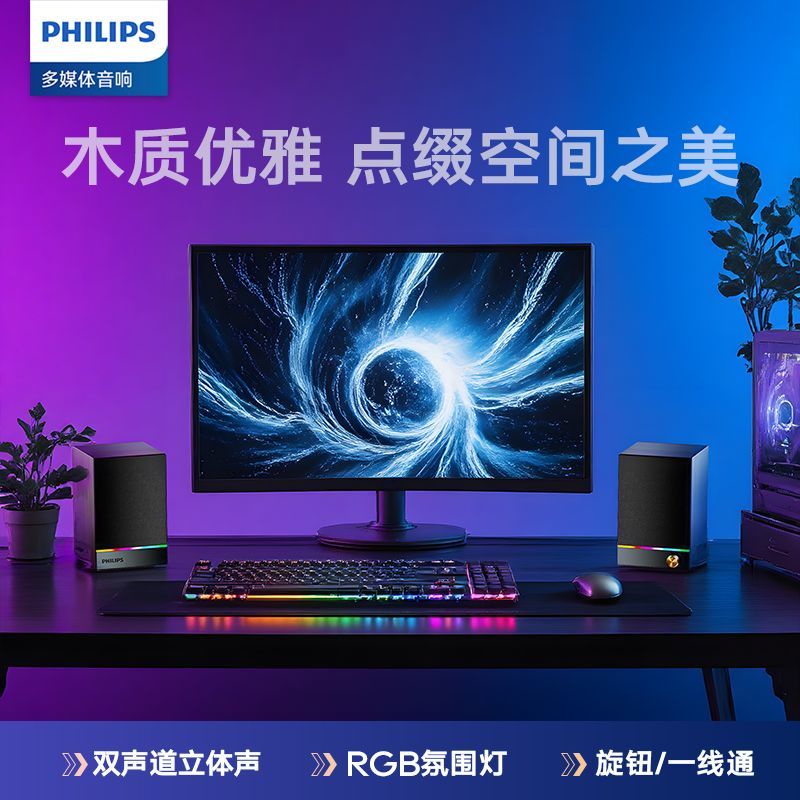 飞利浦蓝牙音箱电脑音响RGB氛围灯桌面木质小音箱usb笔记本音响现正迎来超值优惠,原价81.90元,当前活动售价仅81.9元,叠加平台满一件打8.5折优惠券后,到手价低至62.65元,性价比爆棚!这款音箱采用经典木质箱体设计,音质饱满浑厚,支持蓝牙无线连接,方便连接手机、平板、笔记本等多种设备,USB直插播放更便捷,无需复杂操作。内置RGB氛围灯,灯光随音律律动,为你的桌面增添时尚动感气息,无论是工作、学习还是休闲娱乐都能营造出色听觉与视觉体验。小巧造型不占空间,适合放在书桌、床头或客厅使用,是提升生活品质的必备好物。现在入手仅需62.65元,机会难得,赶快抢购!