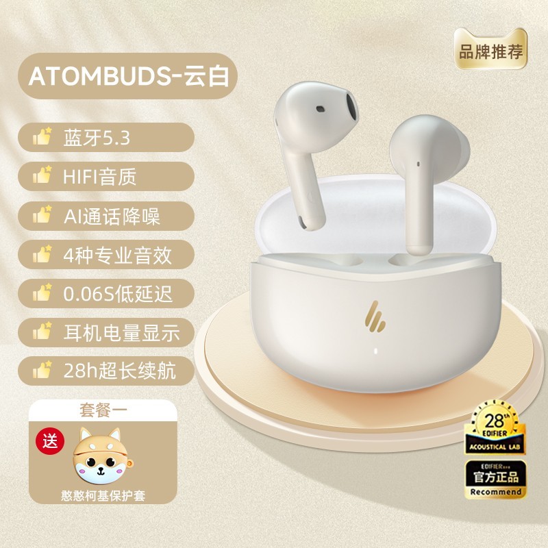 漫步者 A1 半入耳式真无线降噪蓝牙耳机,高颜值云白配色,入眼即显高级质感,将艺术美感融入日常穿搭,轻巧设计佩戴舒适,创新高精密弧线半入耳结构结合零压佩戴耳感技术,稳固贴合,轻若无物,带来由内而外的舒适体验。搭载13mm大尺寸单体,声场宽阔,立体环绕音效三频均衡自然,还原每一处声音细节,让听觉更出色。续航能力再升级,配合充电仓使用最长可达28小时,畅享音乐不断电。