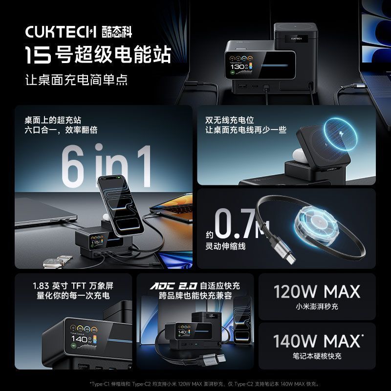 酷态科15号超级电能站140W手机充电器自带伸缩线现正享受拼多多百亿补贴优惠,领券后享7.5折超值折扣,原价375元,现在仅需267元即可到手。这款充电器支持高达140W大功率快充,兼容多种快充协议,无论是苹果iPhone、iPad还是安卓旗舰机型都能高效充电。自带伸缩Type-C充电线,收纳方便,出行更省心,避免携带多余线材的烦恼。小巧机身却蕴藏强劲性能,多设备同时充电也稳定不发热,是居家、办公、旅行的理想之选。高品质用料与智能温控技术保障充电安全,快来抢购这款高性价比的全能充电神器,享受极速充电新体验。