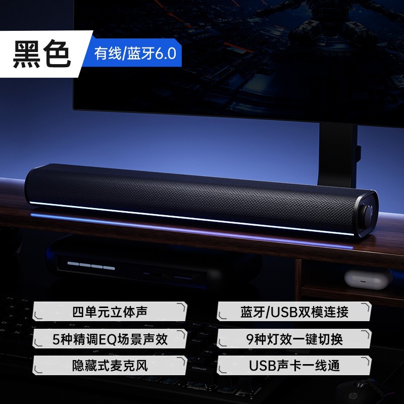 惠普推出的这款电脑音响,专为桌面台式电脑设计,集降噪麦克风、音箱和游戏低音炮功能于一体,还支持蓝牙三模连接,非常适合家庭使用。无论是日常办公、观看影片,还是畅玩游戏,它都能带来出色的音频体验。