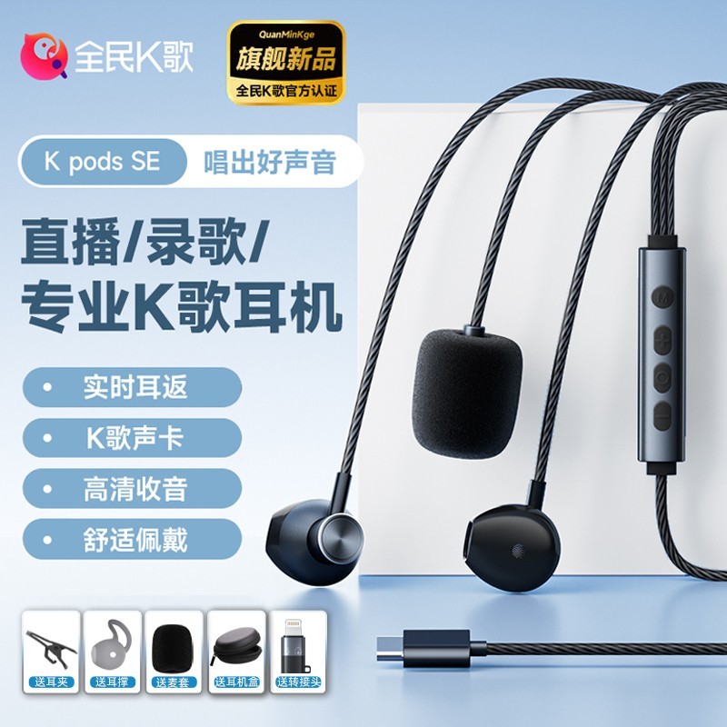 全民K歌有线声卡耳机麦克风耳麦二合一产品来啦!它非常适合唱歌、录歌以及直播使用,并且能适配安卓和华为设备。