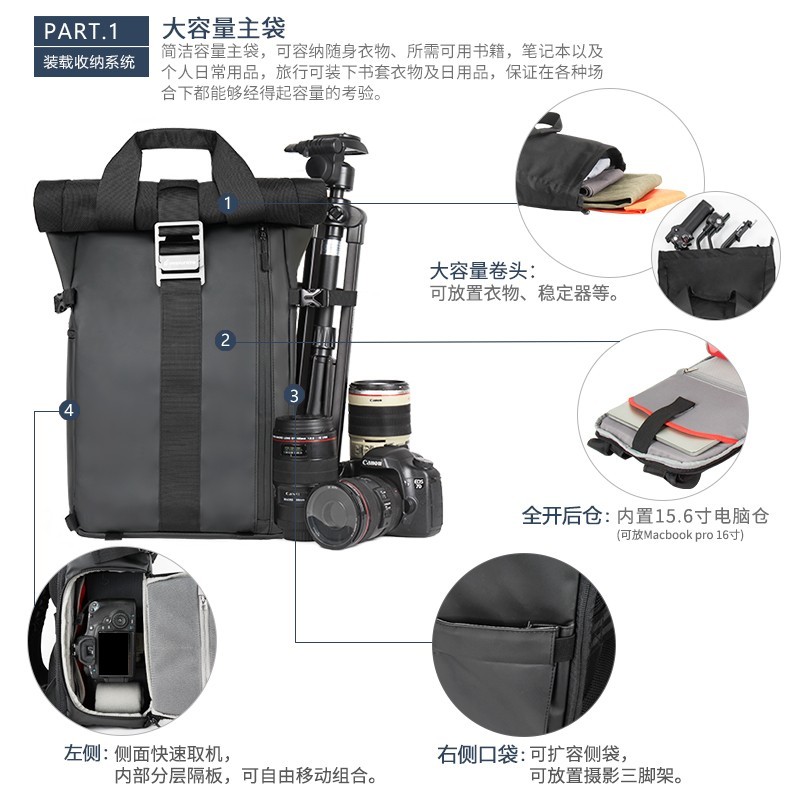佰信BESNFOTO旅行数码单反相机双肩背包是一款专为摄影爱好者设计的专业多功能摄影包,采用高密度防水面料,有效防泼水防刮耐磨,适应各种户外复杂环境,保护您的贵重摄影设备。背包大容量设计,可轻松容纳单反相机、镜头、闪光灯、无人机及配件,主仓侧开快取结构让您在关键时刻快速取机,不错过每一个精彩瞬间。内部隔板可自由拆卸调节,灵活适配不同设备组合,背负系统透气舒适,长时间携带无压力,适合旅行、登山、街拍等多种场景使用。