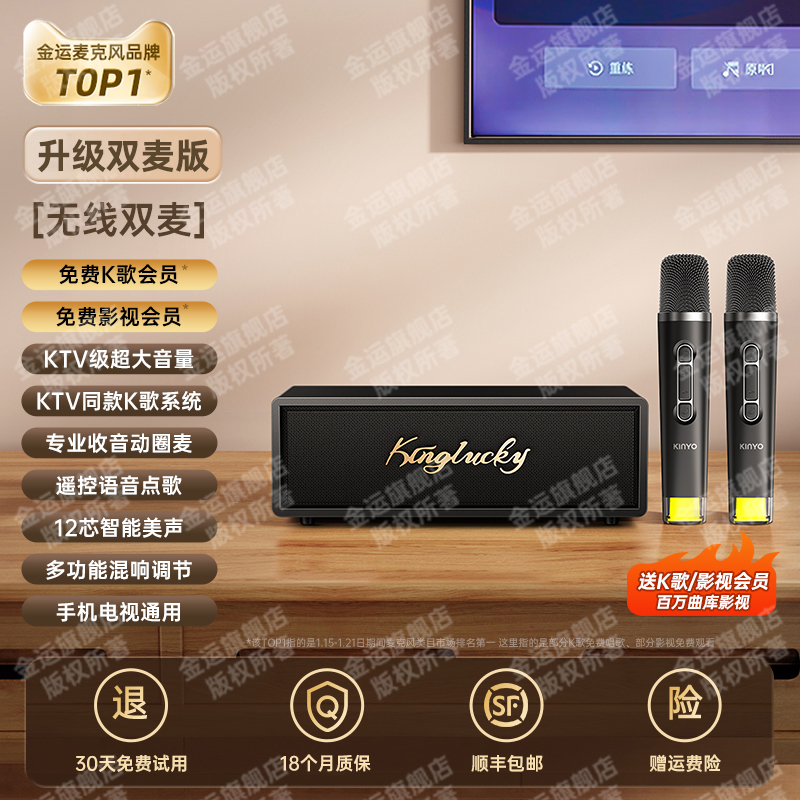 金运K7家庭KTV音响一体麦克风智能点歌机震撼来袭,集音响与无线麦克风于一体,专为家庭K歌打造,内置海量歌曲资源,支持智能点歌系统,开机即唱无需复杂操作,无论是客厅还是卧室都能秒变私人KTV,蓝牙连接、TF卡播放多种模式兼容手机平板等设备,音效强劲立体饱满,带来沉浸式欢唱体验。