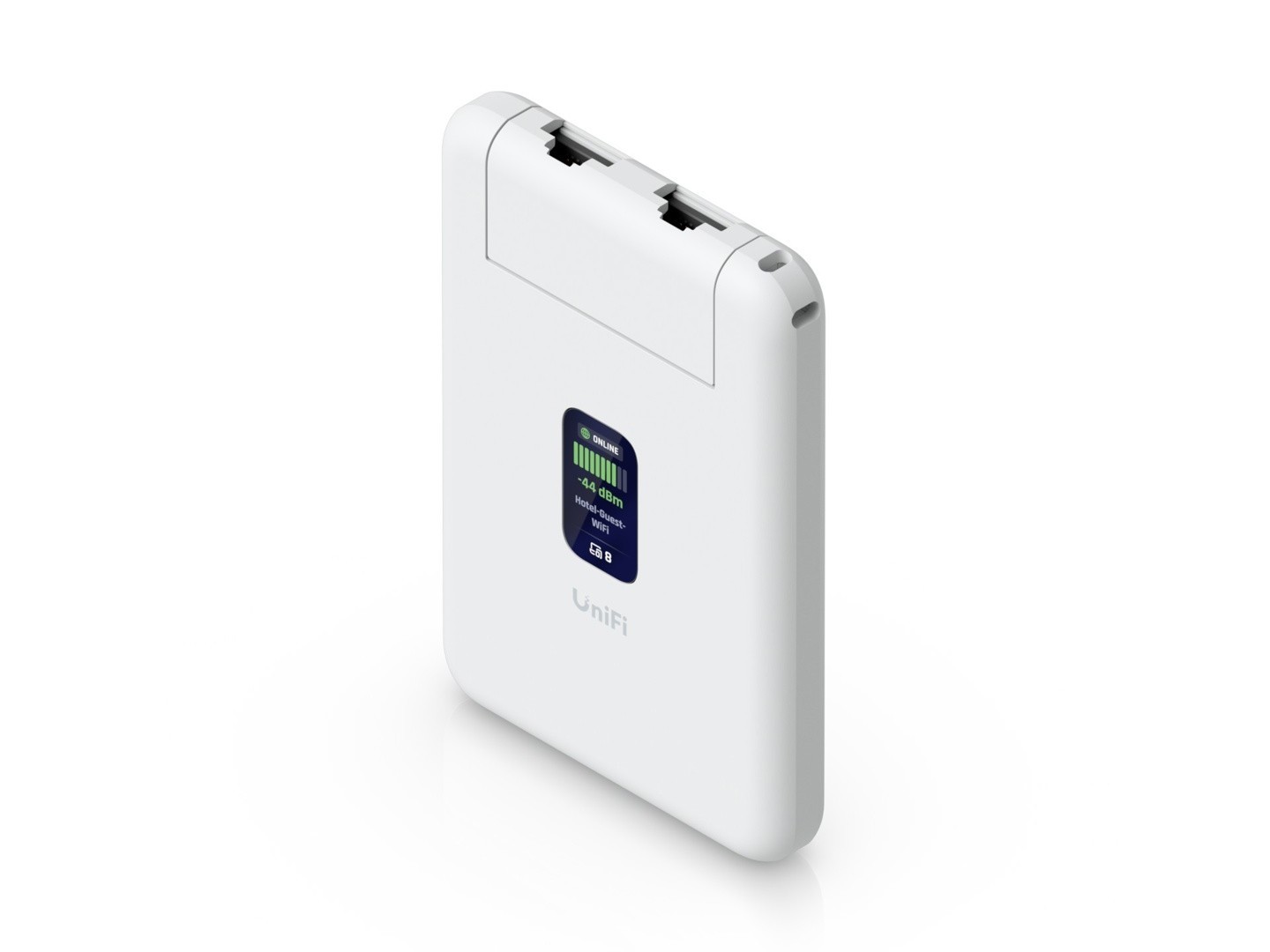 UTR旅行路由器的机身尺寸为95.95×65×12.5毫米,重量89克,采用USB-C供电设计,不配备内置电池。设备搭载一块1.14英寸状态显示屏,便于实时查看运行信息。接口方面,提供两个千兆RJ45有线网口,支持AC1200无线标准,并配备一个支持USB网络共享功能的Type-C接口。