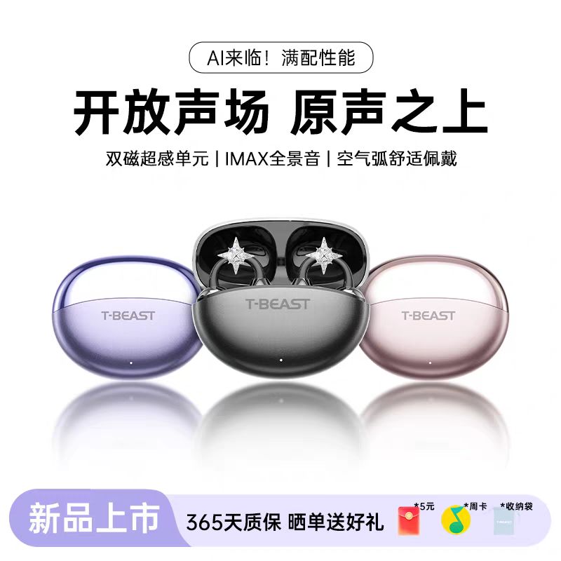 拾光兽蓝牙耳机全新升级夹耳式气骨传导技术,不入耳更健康,运动时佩戴稳固舒适,无惧汗水雨水,适合跑步、健身、骑行等多种场景。采用开放式聆听设计,不堵塞耳道,兼顾环境音安全,通勤出行更安心。搭载AI智能翻译功能,实时语音互译,跨国交流轻松应对。蓝牙5.3稳定连接,低延迟高音质,通话清晰音乐动听。单次续航约6小时,配合充电仓可达24小时,满足全天候使用需求。