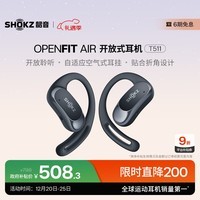 韶音 OpenFit Air T511 开放式真无线降噪蓝牙耳机玄武黑现限时优惠到手价仅457.46元原价597.99元此次降价叠加了15%起减80.73元及满1元打9折多重福利性价比空前值得入手这款于2024年4月12日上市的OpenFit Air开放式耳机创新采用空气式耳挂设计能够自适应不同耳型实现千人千形的软弹贴服佩戴体验贴合稳固且轻盈单只耳机重量约8.7克长时间佩戴也舒适无感耳机表面覆盖防滑柔软硅胶亲肤细腻提升佩戴稳定性音质方面搭载定制高振幅高灵敏度驱动单元配备18mm11mm等效16mm跑道型声音单元结合动态低频增强技术和自研低频增强算法三频均衡低音澎湃高音清晰稳定同时运用自研DirectPitch定向声场技术有效控制声音泄露确保私密聆听体验通话时CVC8.0算法配合双麦克风实现高效降噪沟通更清晰续航方面整机可达28小时支持IP54级防尘抗水适应多场景使用环境还支持双设备连接可通过专属APP自定义音效模式和触控操作满足个性化需求是兼具舒适佩戴智能体验与出色音质的全能之选