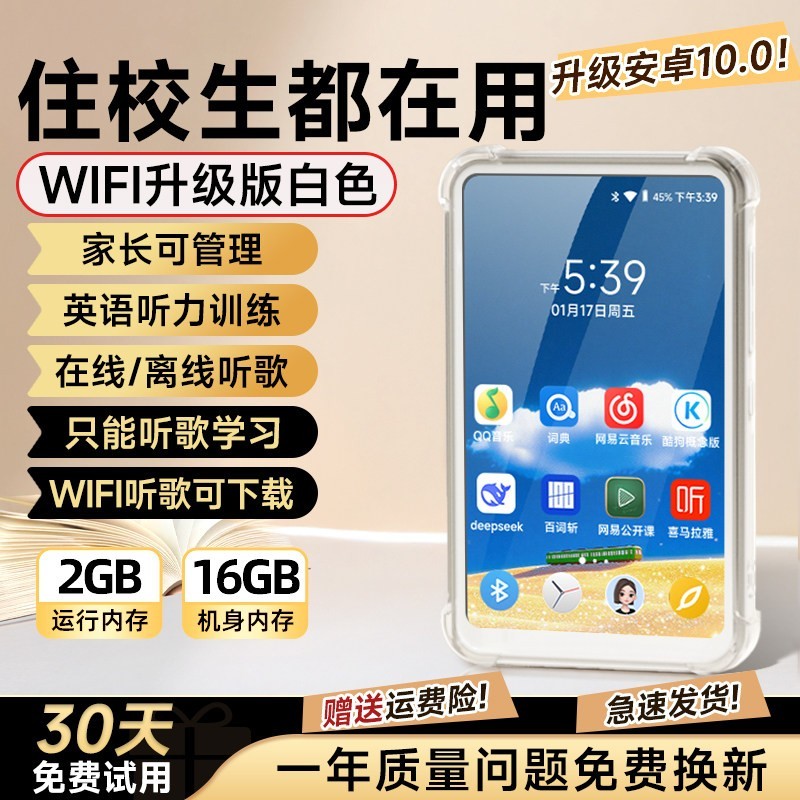 梵沐推出的这款产品集mp4、mp5、mp3等功能于一体,是初高中学生专用的随身听歌神器,还具备wifi功能,堪称音乐播放神器,也被叫做mp9。它能满足学生日常听歌、学英语等需求。