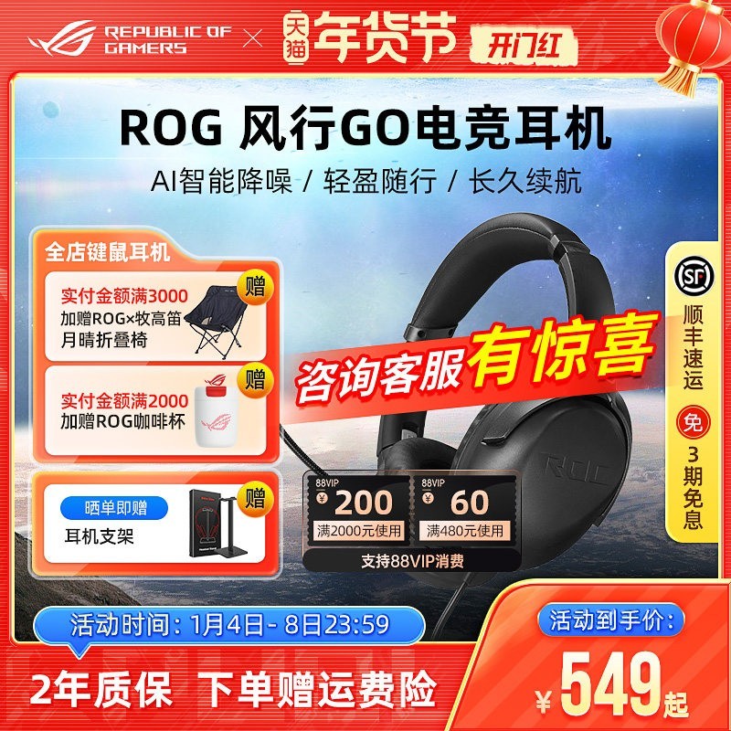 ROG风行GO头戴式无线耳机,是电竞游戏的好伙伴,同时也适用于电脑使用,可当作吃鸡耳麦,由华硕出品。