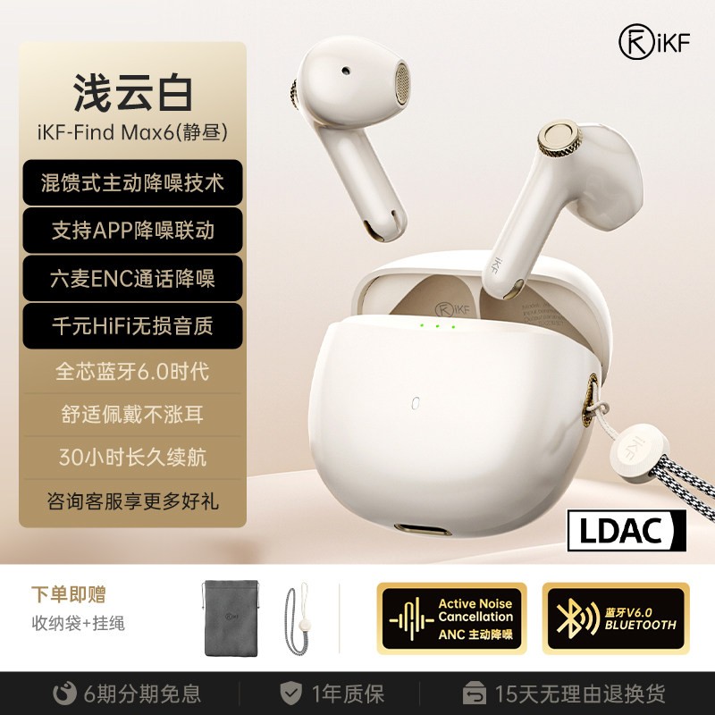 iKF Find Max6静昼无线蓝牙耳机是2026年全新推出的半入耳式旗舰型号,搭载升级版ANC主动降噪技术,智能适配环境噪音,通透模式自然清晰,久戴不胀不累;支持高清音频解码与定制双动圈单元,人声清澈、低频扎实,音质表现远超同级;配合36小时超长续航、蓝牙5.4稳定连接及...