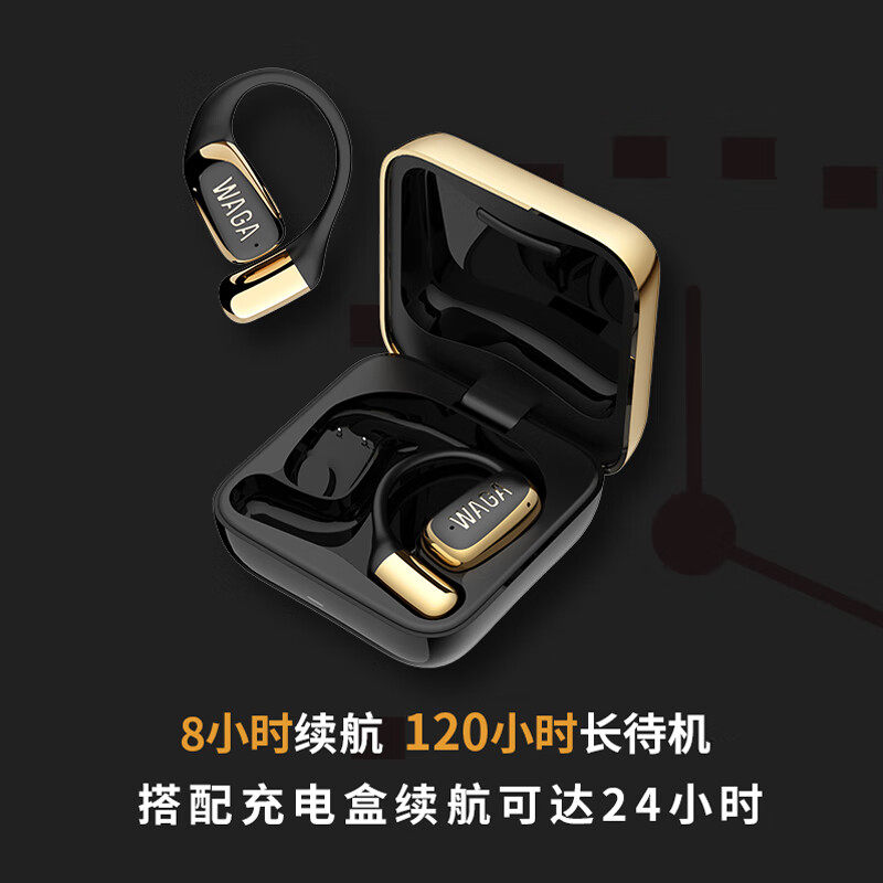 WAGAWAGA挂耳式蓝牙耳机尼罗黑款,采用人体工学挂耳设计,佩戴稳固舒适,支持高清蓝牙5.3传输与主动降噪功能,音质细腻层次丰富,续航长达30小时,支持快充及IPX5级防水,适配多种运动场景与日常通勤;目前天猫精选活动售价1298元,参与立减156元优惠,下单1件实付仅1098元,性价比出众,到手即享旗舰级无线听感体验。