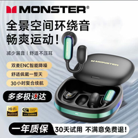魔声(Monster)Airclip AC100 开放式耳夹无线蓝牙耳机滑盖式半入耳运动跑步耳机手机通用 Airclip AC100黑【炫彩耳夹+赠挂绳+配饰一对】