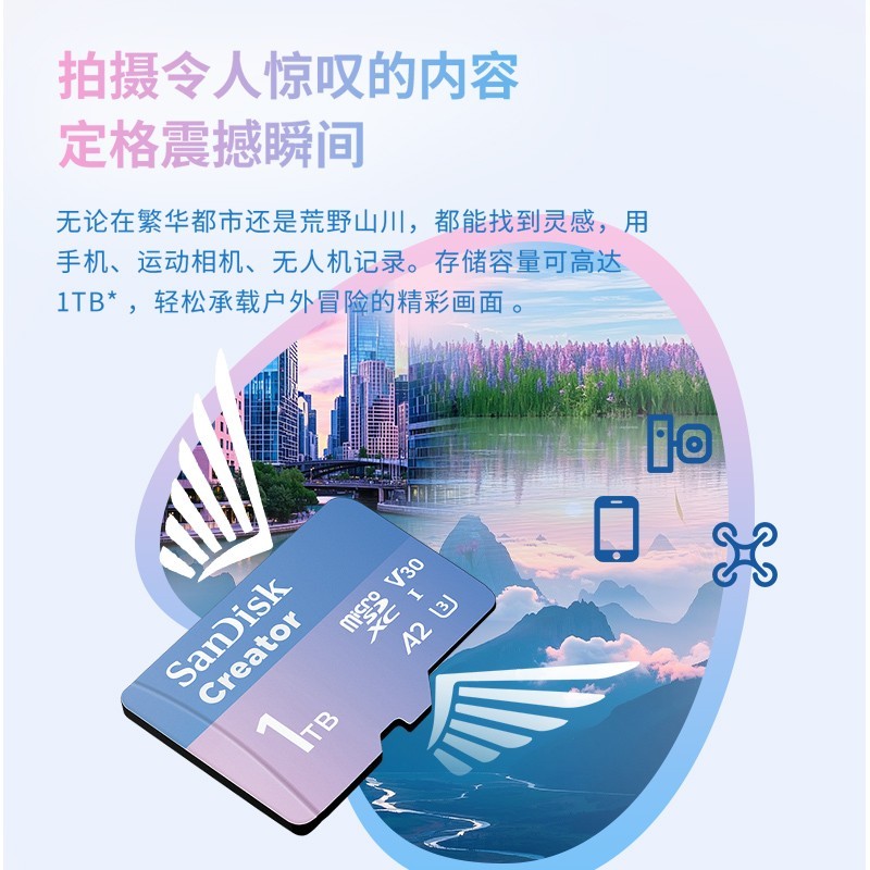 闪迪创作者TF内存卡是摄影摄像及游戏设备的好搭档,有128g和256g规格可选,适用于大疆Pocket3相机、影石以及Switch等设备。