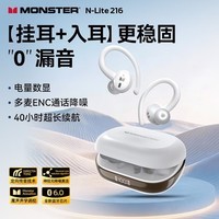 魔声(Monster)N-Lite 216蓝牙耳机挂耳式半入耳二合一开放式无线运动跑步游戏降噪耳机数显版手机通用 经典黑【挂耳入耳二合一版+40h续航+数显】