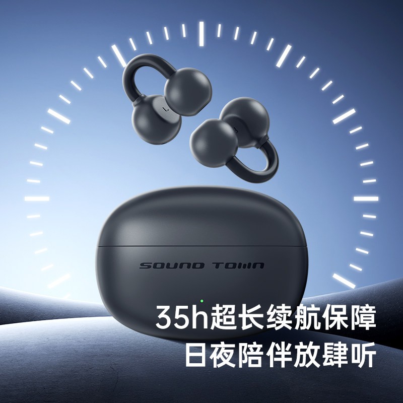 声音小镇推出的2025新款H300蓝牙耳机,采用耳夹无线设计,属开放式气骨传导类型,很适合运动跑步时使用。在运动过程中它能稳稳固定,不会掉落。开放式聆听设计,让你既可以享受音乐,又能感知周围环境,安全又舒适。
