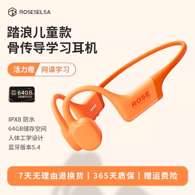 弱水时砂 rose technics的骨传导护耳儿童耳机来啦!这款耳机有活力橙颜色可选,具备64GB内存,还拥有IPX68防尘防水功能。