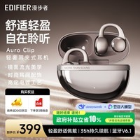 漫步者开放不入耳耳夹式蓝牙耳机采用创新耳夹设计,佩戴舒适稳固不入耳,久戴无感不伤耳道,支持高清蓝牙音频传输,音质清晰通透,续航持久且操作便捷,有线充电方式稳定可靠;目前京东活动售价399元,叠加满79减5优惠券、满1件享9.5折及政府补贴立减10%三重优惠,再送晒单返2000京豆,下单1件实付仅316.64元,性价比超高,轻松享受自由听音新体验。