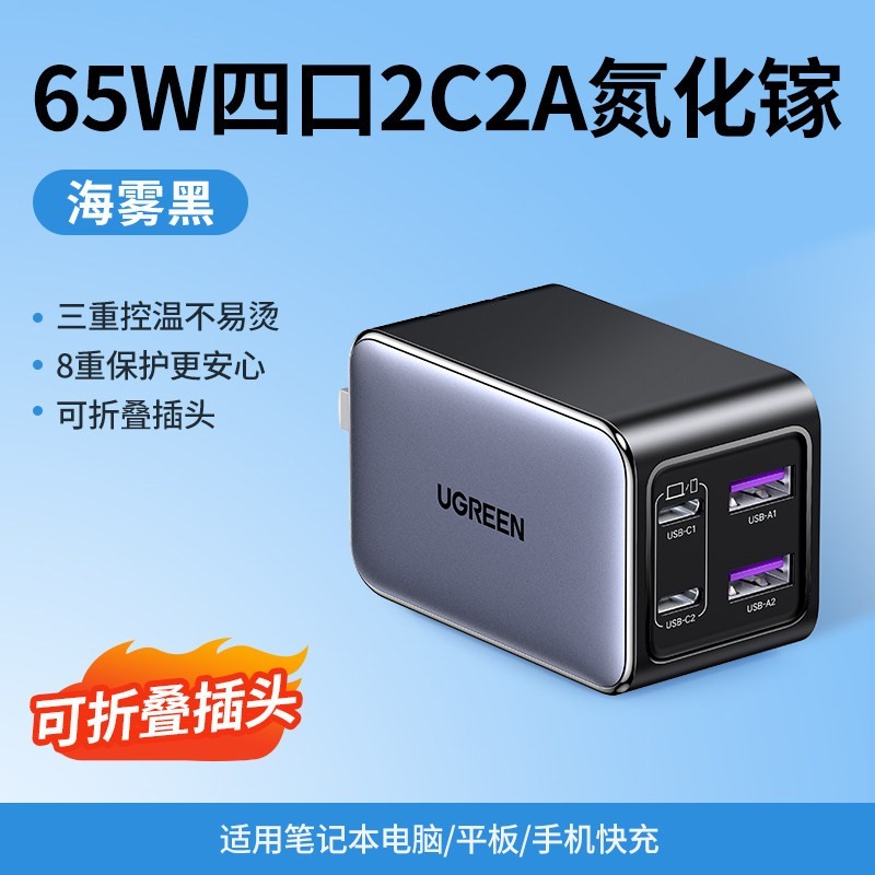 绿联100W氮化镓充电器头,采用前沿氮化镓黑科技,发热低、效率高,支持PD快充协议,兼容苹果iPhone17Pro、小米、华为及MacBook Air等主流笔记本与手机,四口全Type-C设计可同时为多设备供电,真正实现笔记本+手机一充搞定,出差旅行一个顶四个大幅减轻负担;日常价99元起...