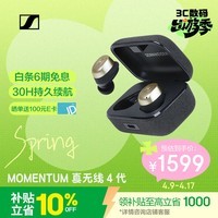 森海塞尔MOMENTUM真无线4代京东特别设计版入耳式动圈降噪蓝牙耳机曜金黑,现京东有优惠活动。这款耳机外观采用曜金黑配色,运用人体工学设计,耳机耳塞能更贴合耳朵。规格上采用蓝牙5.4技术,配备7mm单元及六话筒阵列,内置TrueResponse换能器系统,还支持高通aptxLossless传输协议,拥有IP54级防水防尘,支持自适应降噪系统。续航方面,单耳机续航7.5h,配合充电盒使用续航至高30h,充电盒支持QI无线充电。