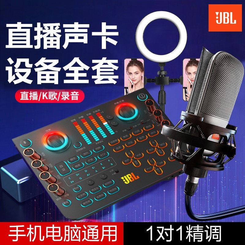 JBL直播专用声卡设备全套来袭,它适用于手机和电脑,是网红主播专业K歌、唱歌的得力工具。